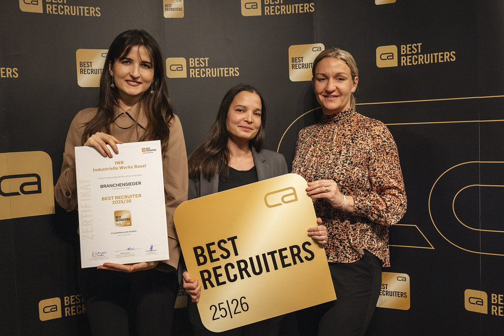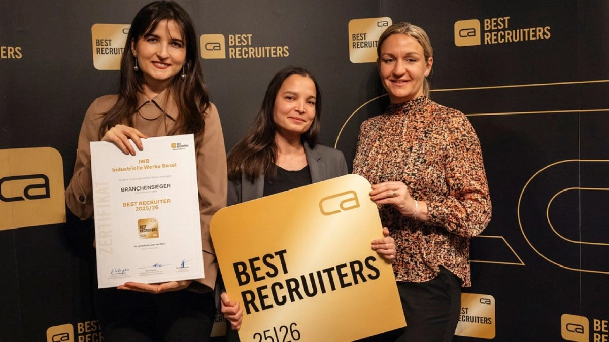 Die Basler Energieversorgerin IWB gewinnt den «Best Recruiters»-Award 2025/2026 in ihrer Branche und belegt den achten Platz im Vergleich mit den grössten Arbeitgebern der Schweiz. Die Auszeichnung bestätigt die konsequente Weiterentwicklung des Rekrutierungsprozesses – ein zentraler Erfolgsfaktor im Wettbewerb um Fachkräfte.